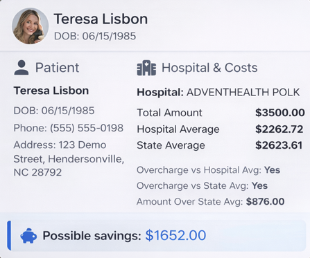 Upload your bill → we compare to real hospital prices → see overcharges and download a negotiation letter.